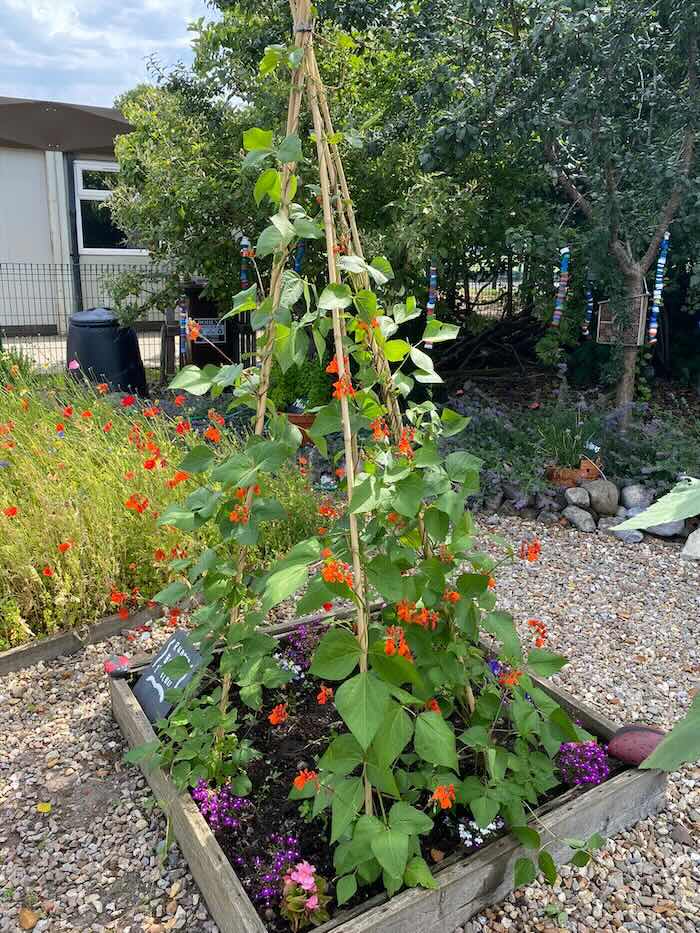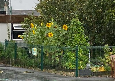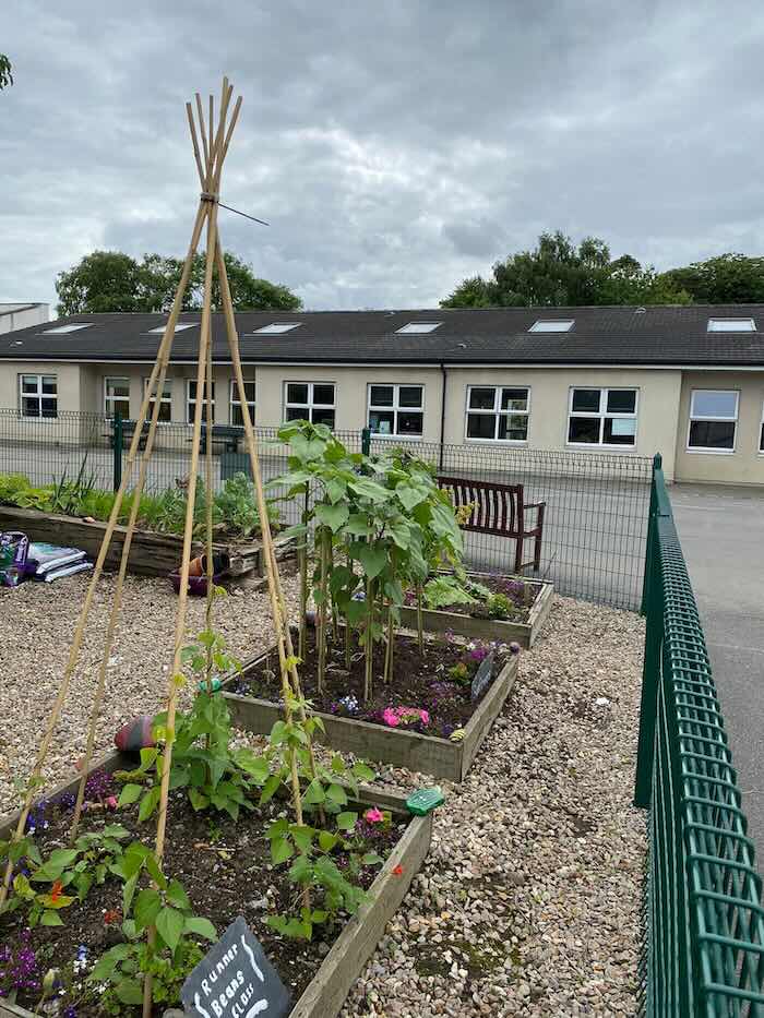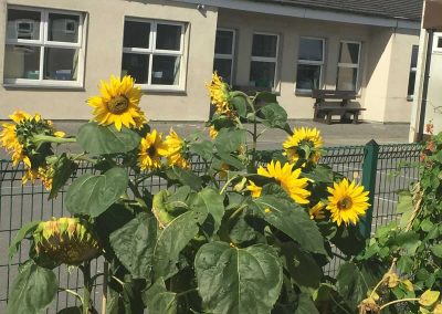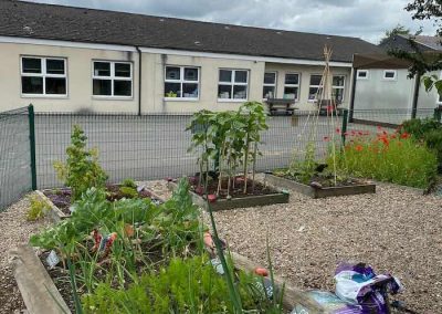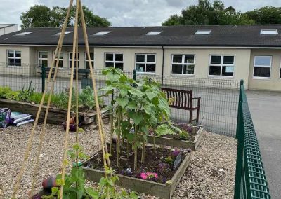 The garden has been used within the curriculum (Maths- measuring, Art- decorations, bird feeders,S.P.H.E.- mindfulness, sensory experiences..) and has been of great benefit to all especially the children who have enjoyed going out to dig, plant, pick and taste their own produce.